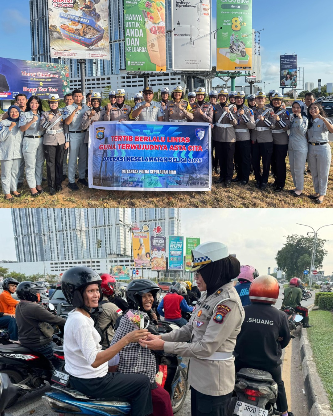 Cardovanews.com – Ditlantas Polda Kepri turun langsung ke jalan untuk menyapa para pengendara dalam rangka Operasi Keselamatan Seligi 2025. Dengan penuh senyuman, Ditlantas Polda Kepri memberikan edukasi lintas lalu sambil memberikan apresiasi berupa hadiah kepada pengguna jalan yang menunjukkan kepatuhan terhadap peraturan lalu lintas di kawasan Simpang Frengky/Pollux Habibi terlihat berbeda. Jum’at Batam (14/2/2025)